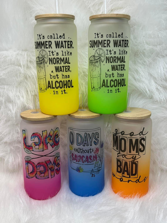 18oz Ombre Glass Cans w/ Bamboo Lid | Sublimation | Clearance