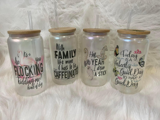 16oz Sparkle Glass Can w/ Bamboo Lid | Sublimation | Clearance