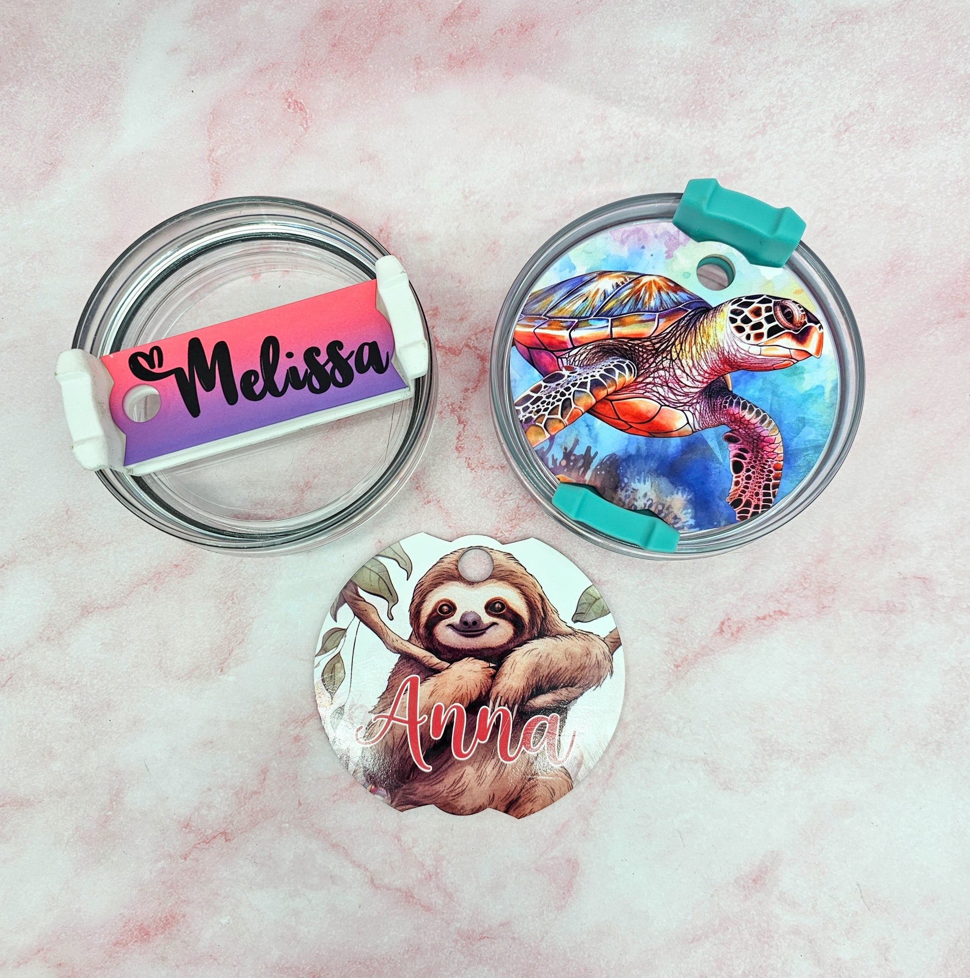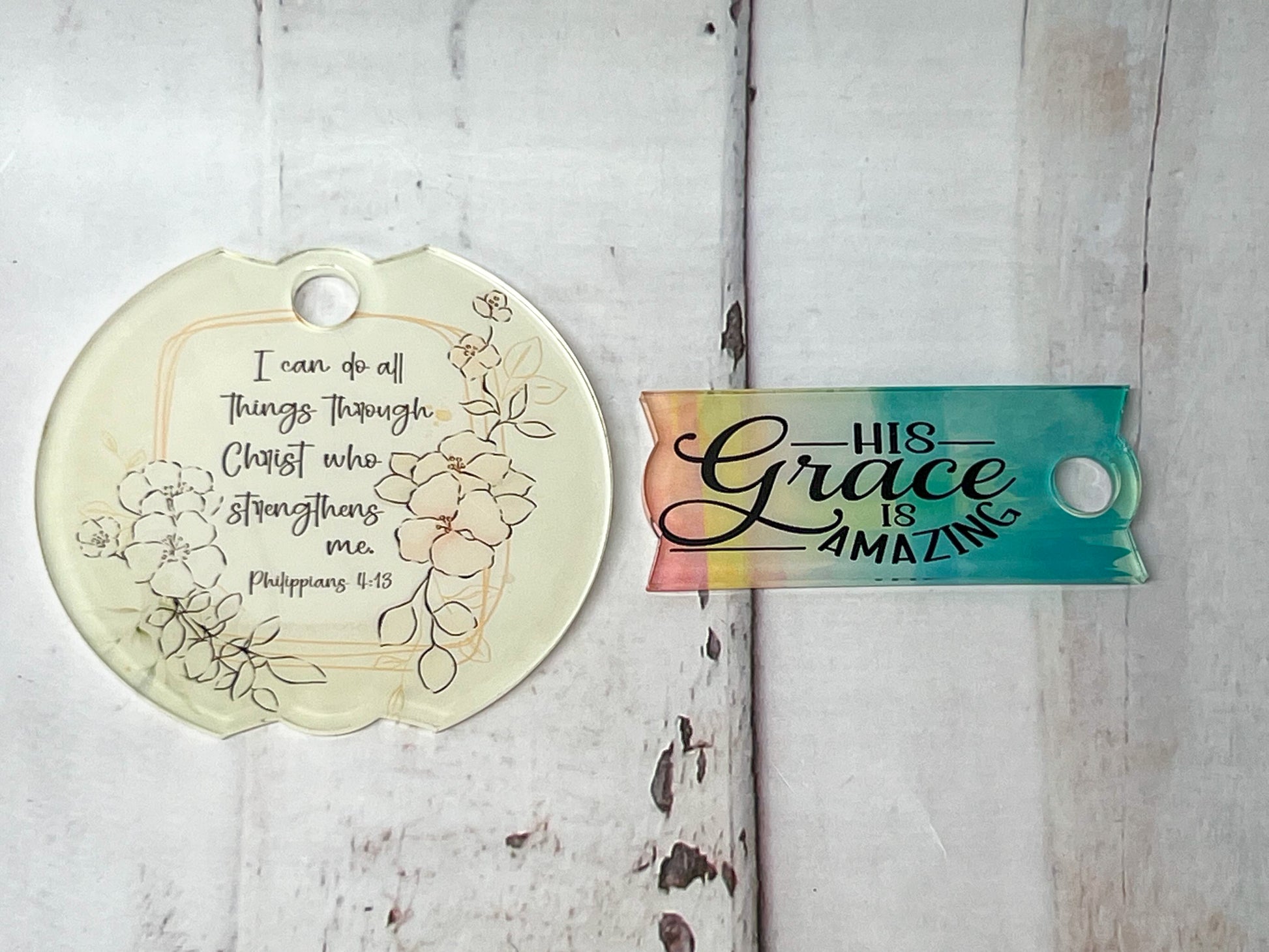 - Choose from white acrylic (sloth and turtle designs pictured), Clear/white back acrylic (amazing for sublimation, no warp (faith deisgns pictured), or clear glitter acrylic