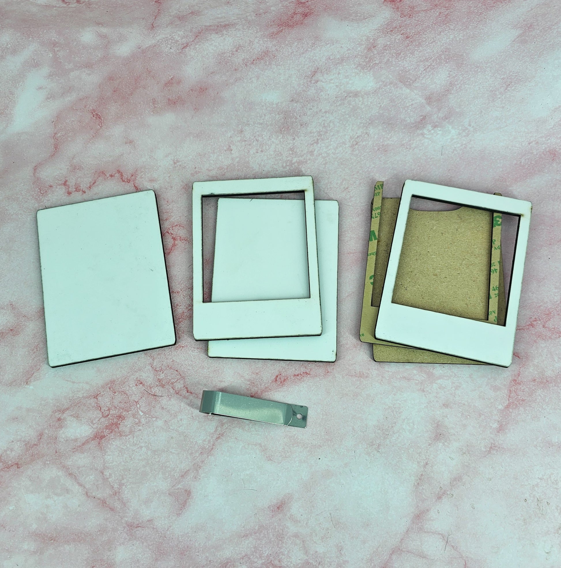 - Assemble by gluing wood pieces together, if needed or peeling off adhesive backing and pressing together. Glue visor clip to the back with flat side down.