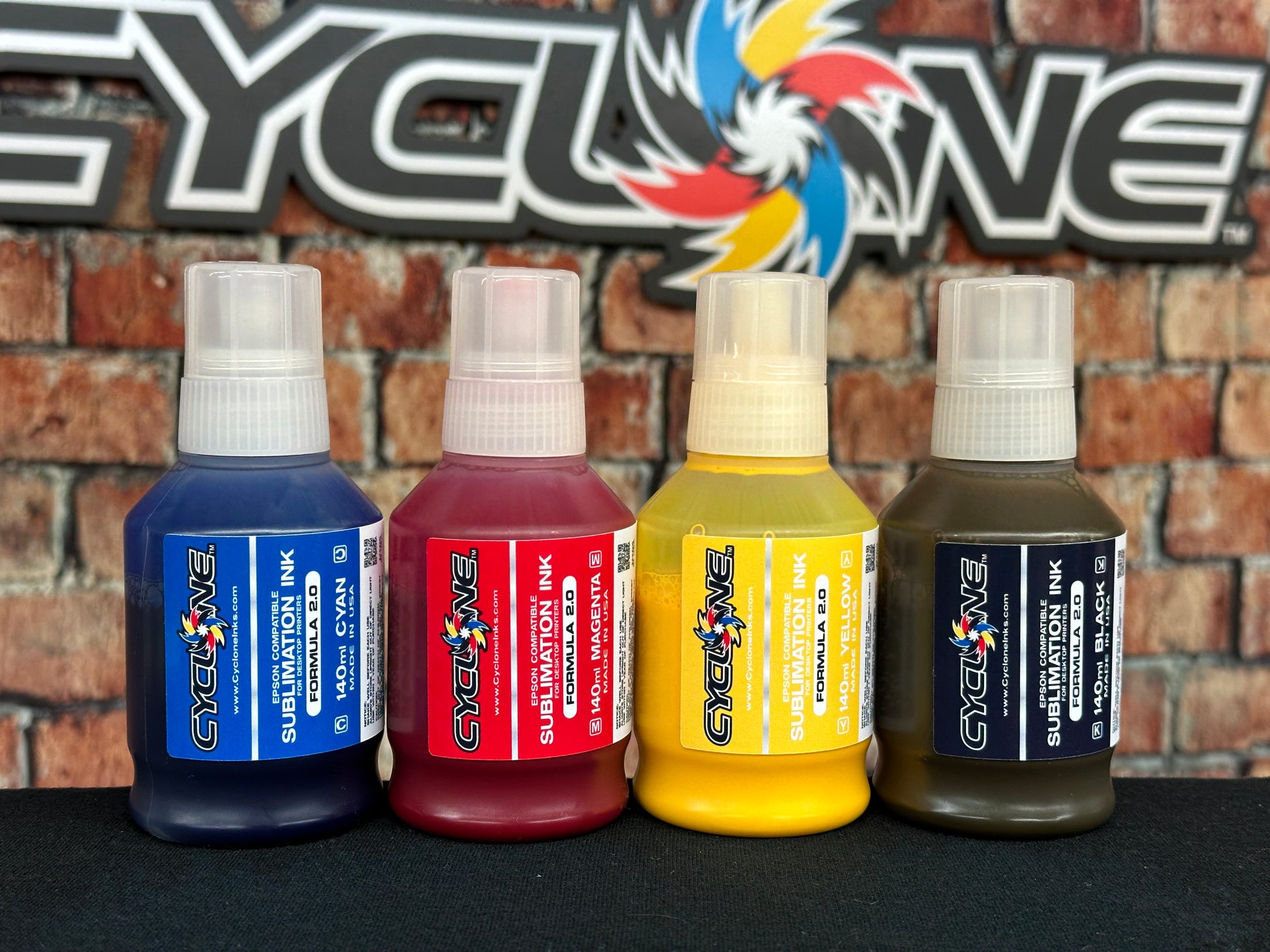Cyclone 2.0 Sublimation Ink | CMYK 140ml Bottle Set for EPSON EcoTank Printers | Made in the USA