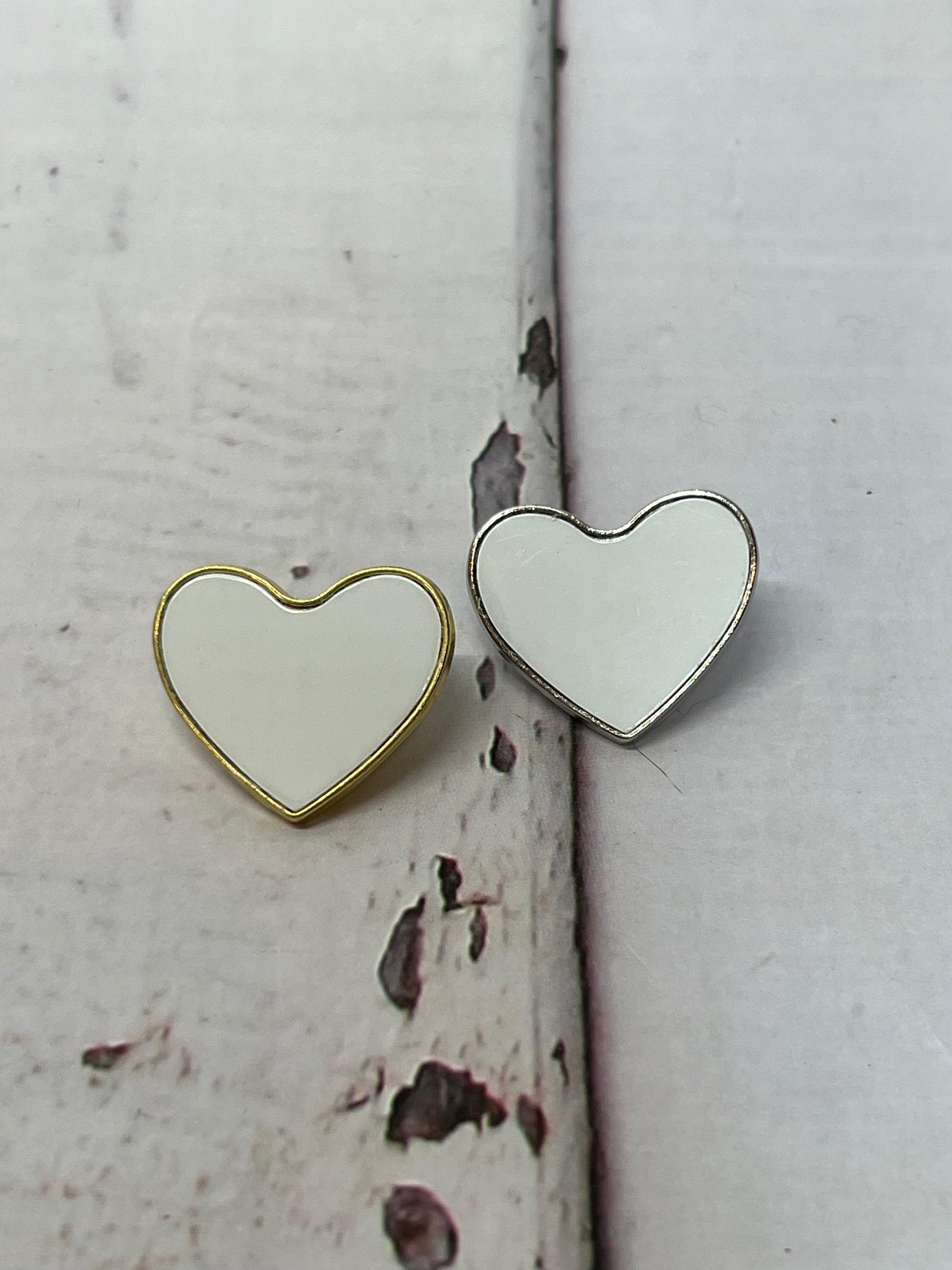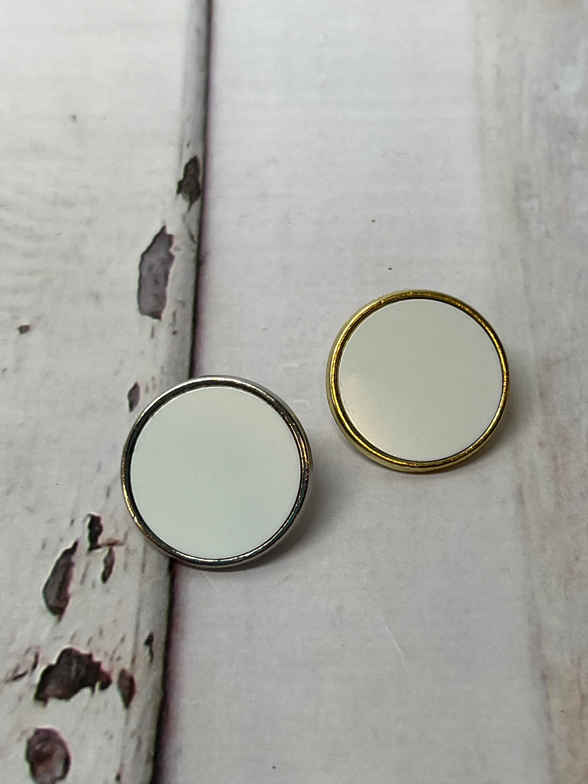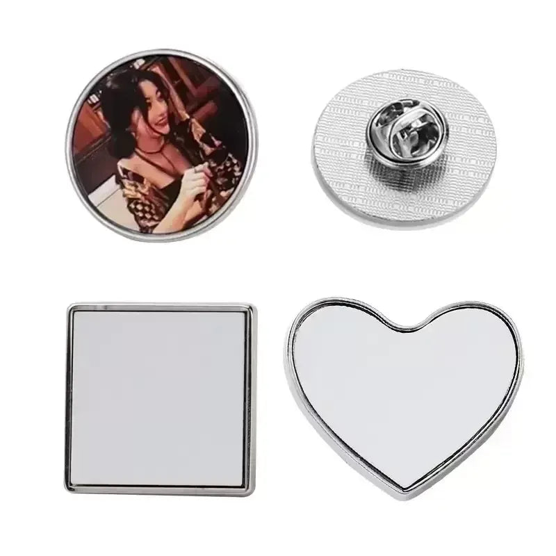 Sublimation Blank Pins in Silver and Gold with insert and butterfly pin back.