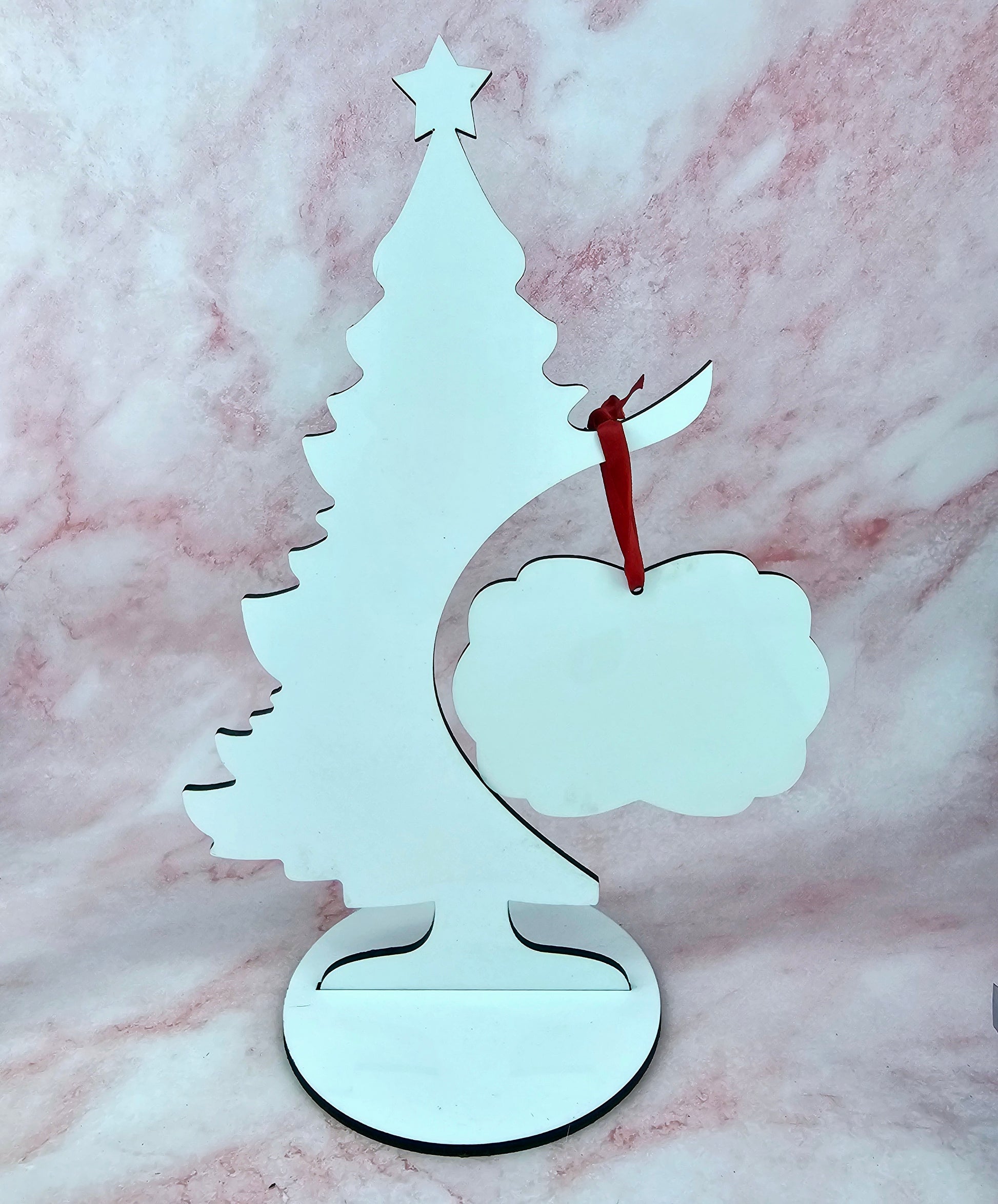 - Christmas Tree ornament stand includes a sublimation blank base, and tree to hold an ornament